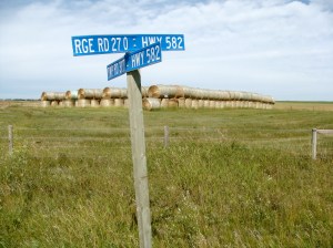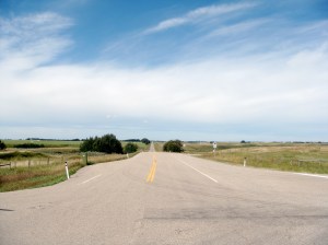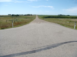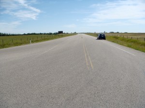 I took this crazy route to avoid going through downtown Calgary.  Thank god I picked up a driving map from the tourism center in Canmore, otherwise I would have been royally screeeeeewed.  There’s weird turnoffs, + “secondary” highways that aren’t that clearly marked on the map.  I kept thinking to myself, “I hope i’m supposed to make a left at this junction.”.  Because I would end up at 4 way junctions that looked like this: