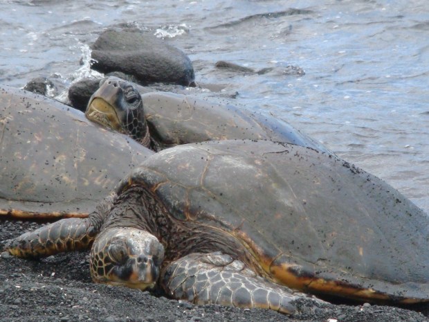 Today, we headed out of Volcano Village heading south-west towards the west coast of the Big Island.  Our first stop was Punalu’u Black Sand Beach.  Honestly, I was not the impressed, except for the large turtles that like to bask on the sand.
