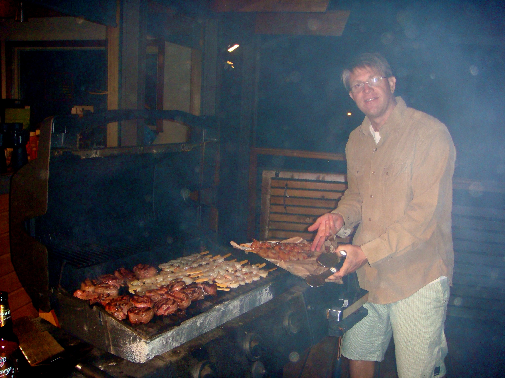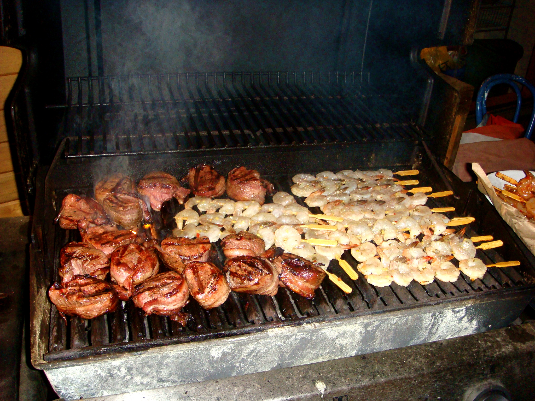 Filet mignon + shrimp kabobs on the grill, yo!!! Decadence to da max!!!
