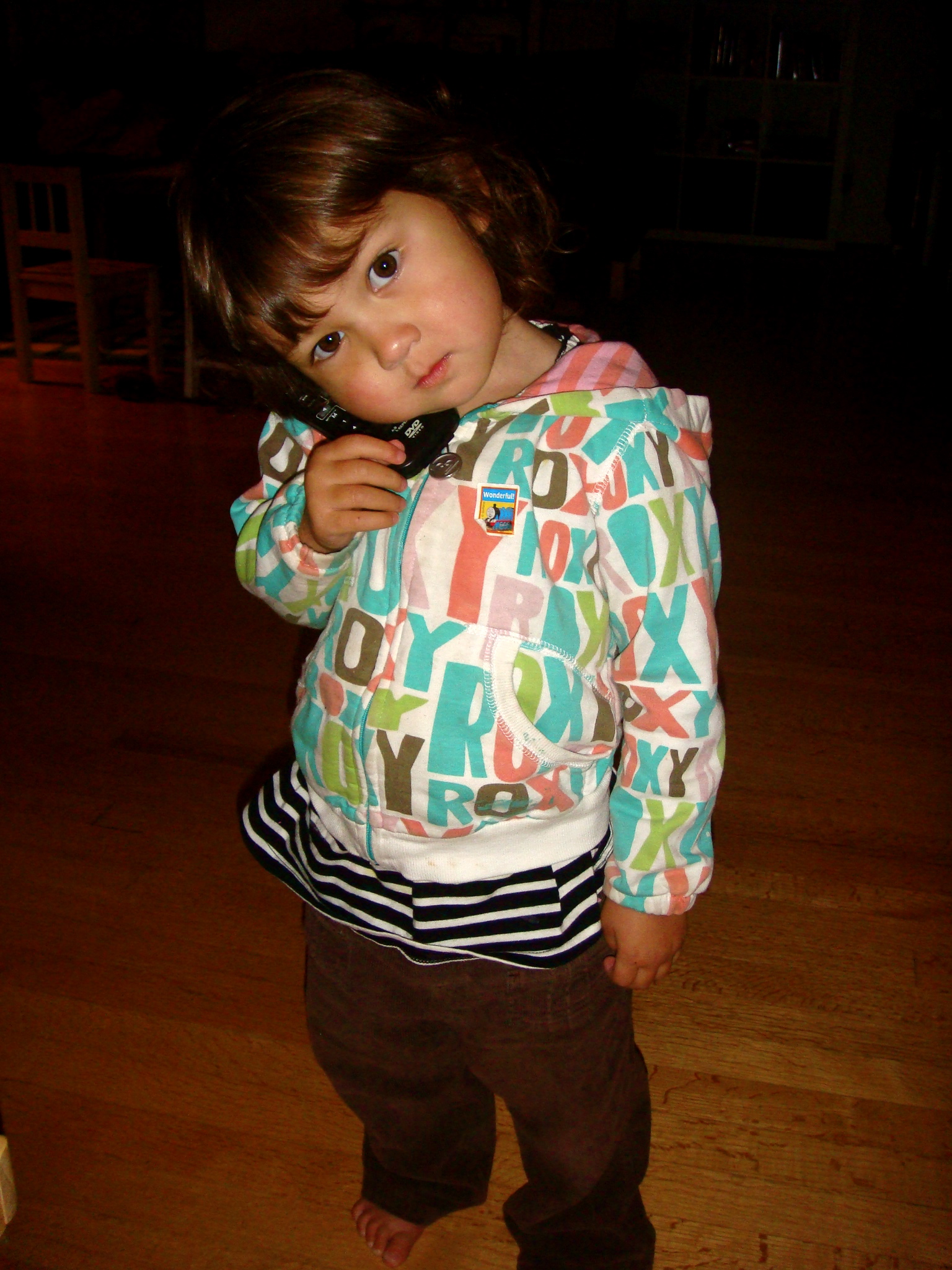 Here’s little button Hana using a remote control as a cell phone. Ridiculously cute!!!!!! Unbearable!!
