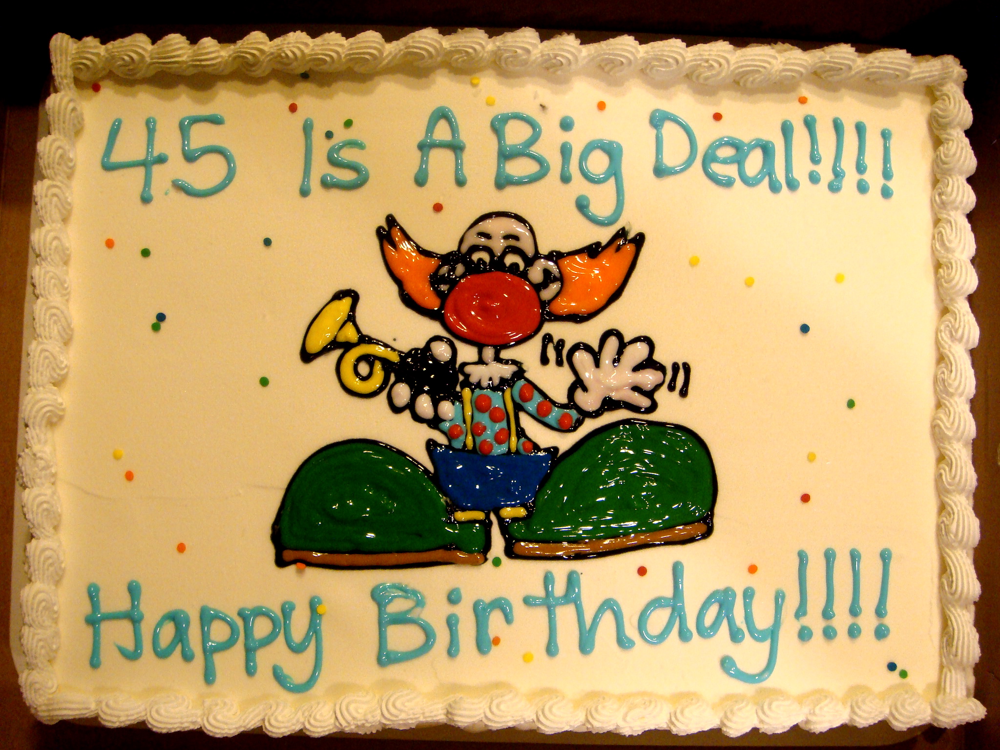 Jeff wanted a Dairy Queen ice cream cake. What do you think of the caption? 45 IS a big deal!!!! The zombie kid at Dairy Queen made me want to reach over to check his pulse, but I got a slight crack of a smile from him when he saw my ecstatic happiness when Isaw the cake.