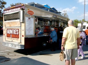 Even though we had a big lunch, guess who was hungry again?! I had to get some frybread while I was at the Marketplace! It’s a sin to leave the Marketplace without having frybread! There were three food trucks outside, because food trucks are really trendy right now. I remember when they served the frybread from under a cramped pop-up tent.