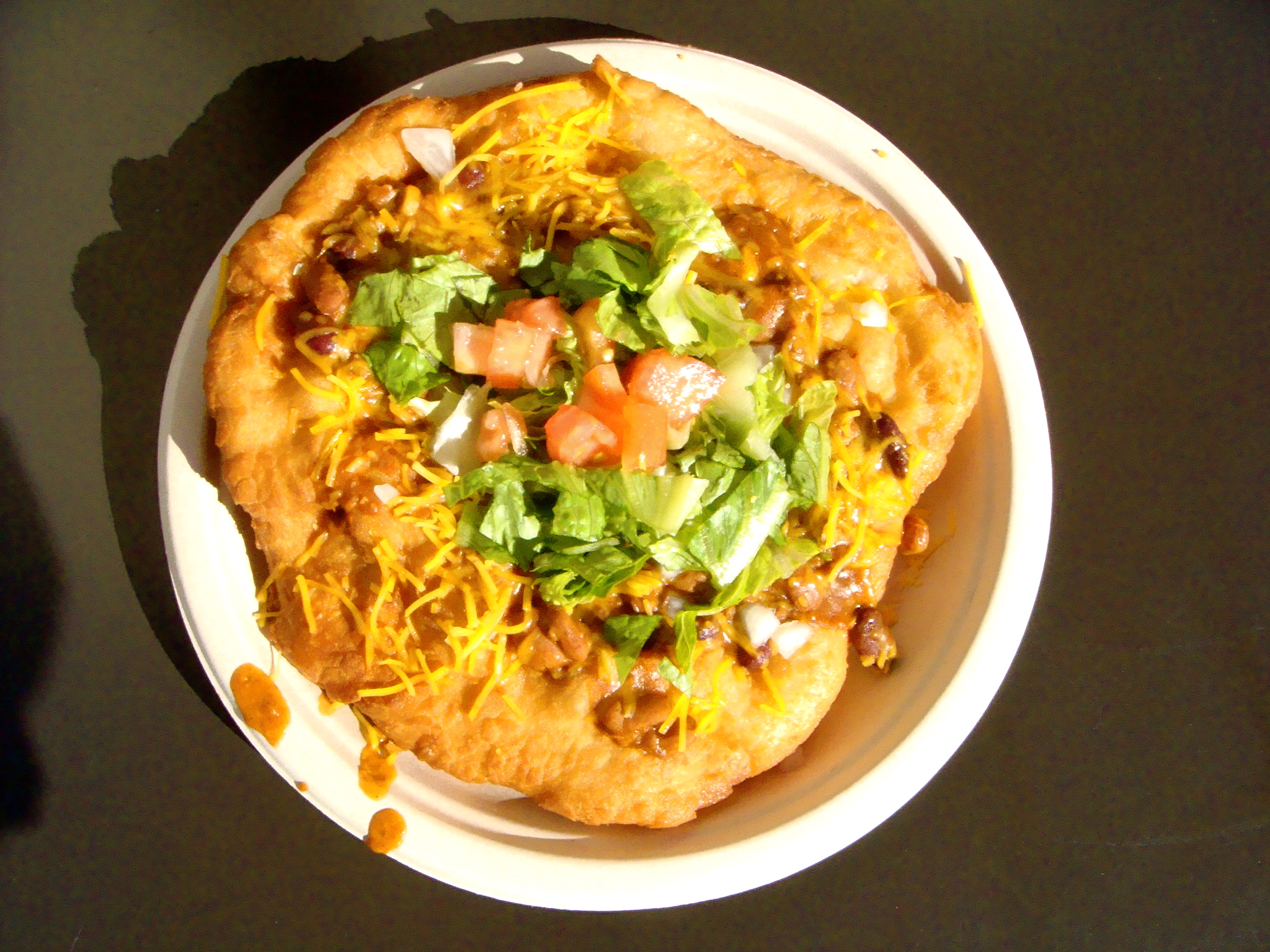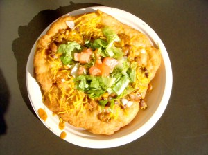 Check out this frybread!!! Frybread is like a Native American taco. Fried, doughy goodness with chili ground beef, cheese, lettuce, tomato!!! And since I was with a couple of Koreans, we doused it with so much Tapatio hot sauce, it was a fiery mess!!!! More salsa! Oh, I will be sad in Canada without salsa on every table….