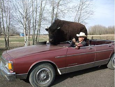 Sorry it’s been so long since I’ve posted. Working night shoots for the past couple weeks has been interesting. You would think that if you were acclimatized to working nights week after week, it would be okay, but you still feel crazy. It’s not natural for human beings to stay up all night + sleep during the day. I’m not a bat for god’s sake! I need vitamin D!!!! The good thing is, everyone at work feels crazy, so you’re all in the same boat. Wait, I don’t know if 200 + people feeling crazy is a good thing…My friend + I talk about things that make us really happy while we’re working at 3am+ feeling loopy. Lately, it’s been buffalo. Yes, buffalo. She was listening on NPR about a man in Alberta who has a pet buffalo named Bailey Jr., raised from infancy. It likes to spend it’s afternoons watching tv in the living room. And of course, they’re Canadian.