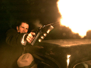 Oh + I titled this post “Pardon Me?” because during the week we were doing stunts + firing tommy guns. I didn’t plug my ears quick enough + I think I blew out my right ear drum. I went to lunch with my buddy Debbie today + I had to ask her, “Can you speak up a little? We were shooting guns at work + now I can’t hear very well out of my right ear.”. That’s a totally normal statement to make about your work day.