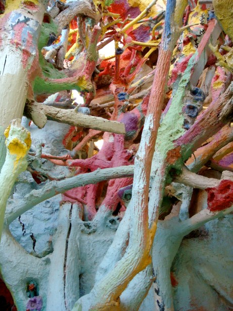 A folk art monument created by Leonard Knight to show his everlasting love for God. Built entirely of adobe, cement, clay, glass + donated cans of paint!!! Pictures do not do it justice – it’s meant to see in person, wander around + climb upon! It even has it’s own website! http://www.salvationmountain.us/