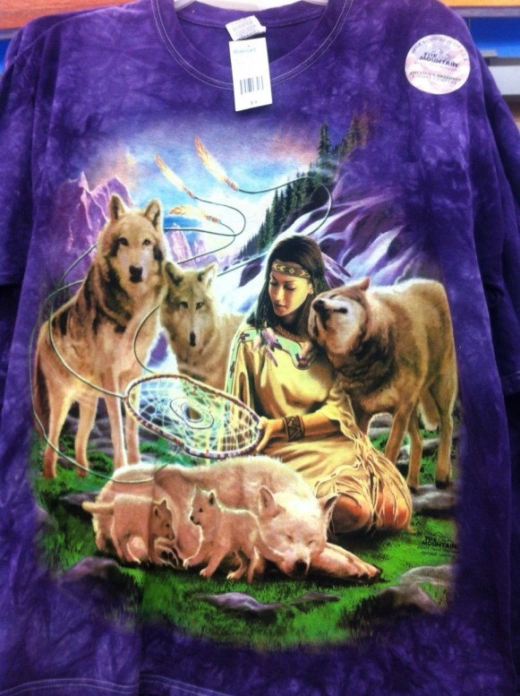 At night we entertained ourselves by checking out the freak show at the 24hr Walmart.  When I saw this t-shirt I flipped my lid!!!!  It was as if whoever created it said to themselves, “Hmmmm, how would Shelli like to live her life everyday????  Yes, I know!  Surrounded by snuggling fluffy wolves + baby wolf pups in a beautiful forest, while holding a dream catcher!”.  Genius.  I would like to personally thank this t-shirt designer.