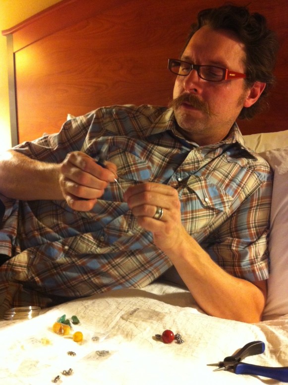 Speaking of work, here is Jeff providing free labor making some earrings for me in the hotel.