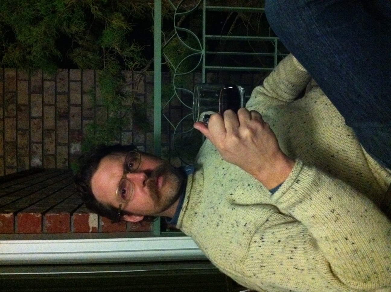 Hotel glass mug full of wine, y’all. Passing a fine evening on the veranda. It’s been so amazing having him on location with me!!!!!