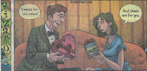 The best part of this scenario is the fact that I had already seen this comic strip in the Sunday papers before he gave it to me + when I saw it I thought, “Wow, this is exactly like Jeff + I.”. I’m glad we both know where we stand in our relationship. I miss my nutty Valentine.