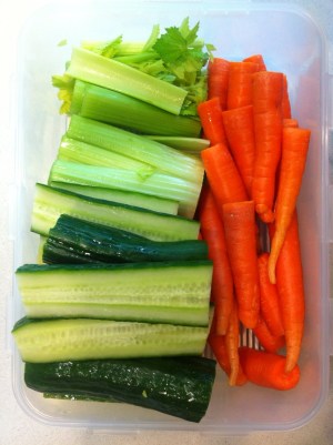 A veggie medley of cucumbers, carrots + celery. Yuuuuuuuuuummy!