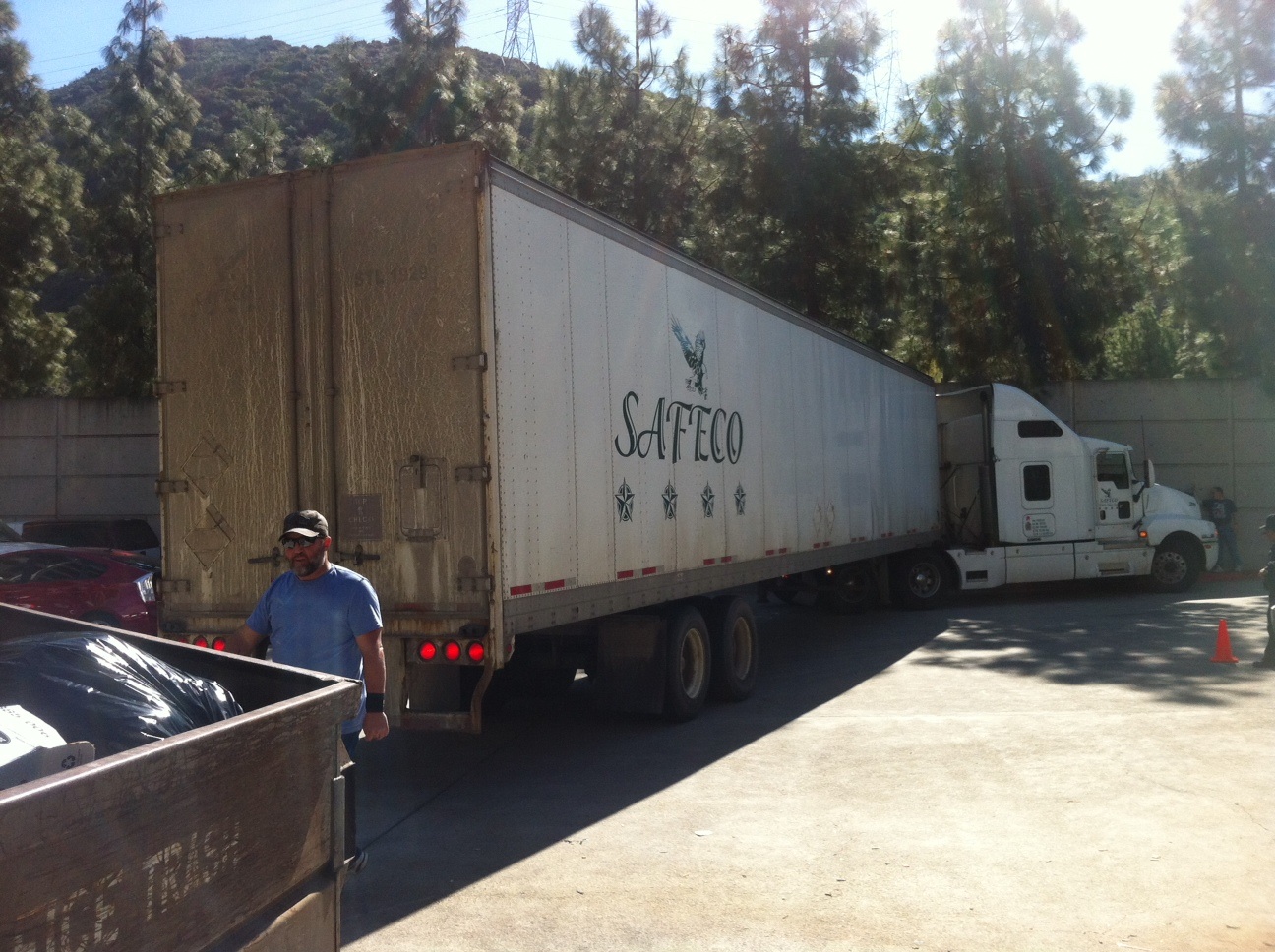 To illustrate my point, here comes the 50 foot truck LOADED with heavy arse boxes for us to break down.