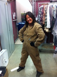 Yes, coveralls make me happy. Yes, they’re supremely unflattering! Yes, I look like I’m wearing a mattress underneath! But guess what?! They are utilitarian!!!! I don’t give a rat’s ass!!! I’m comfortable!!! That’s what happens when you become complacent!!!!!!! Jeff, you better turn those immigration papers in fast!!! Watch out, or pretty soon I’ll be wearing pajamas to work!!!