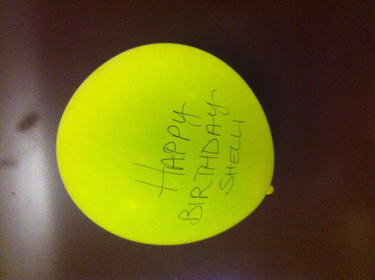 I affectionately like to refer to the costume department as, “The Cave” or, “The Salt Mines” – because there is no natural light + it’s stuffy + full of misery. My old comrade in arms, Amber, put up cheery balloons for my birthday on the department + costume trailer doors!