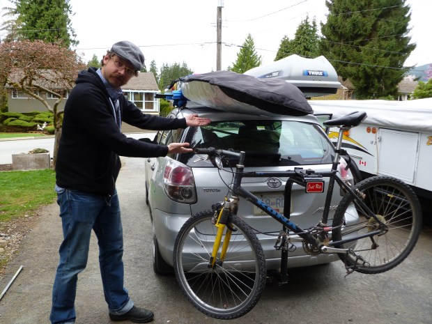 Packed car, packed Thule, paddle board + bike.  Au revoir, Vancouver, we may commence our 11 hour drive.