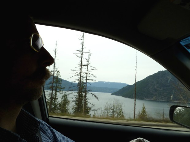 See Jesus comforting the sobbing, ashamed kid wearing a pot leaf t-shirt?  Jesus is like, “It’s ok, man.  It’s ok.”.  Back on the road again.  Unfortunately, all the picturesque views were on the drivers side.  I could see a little bit of lake + a lot of moustache .