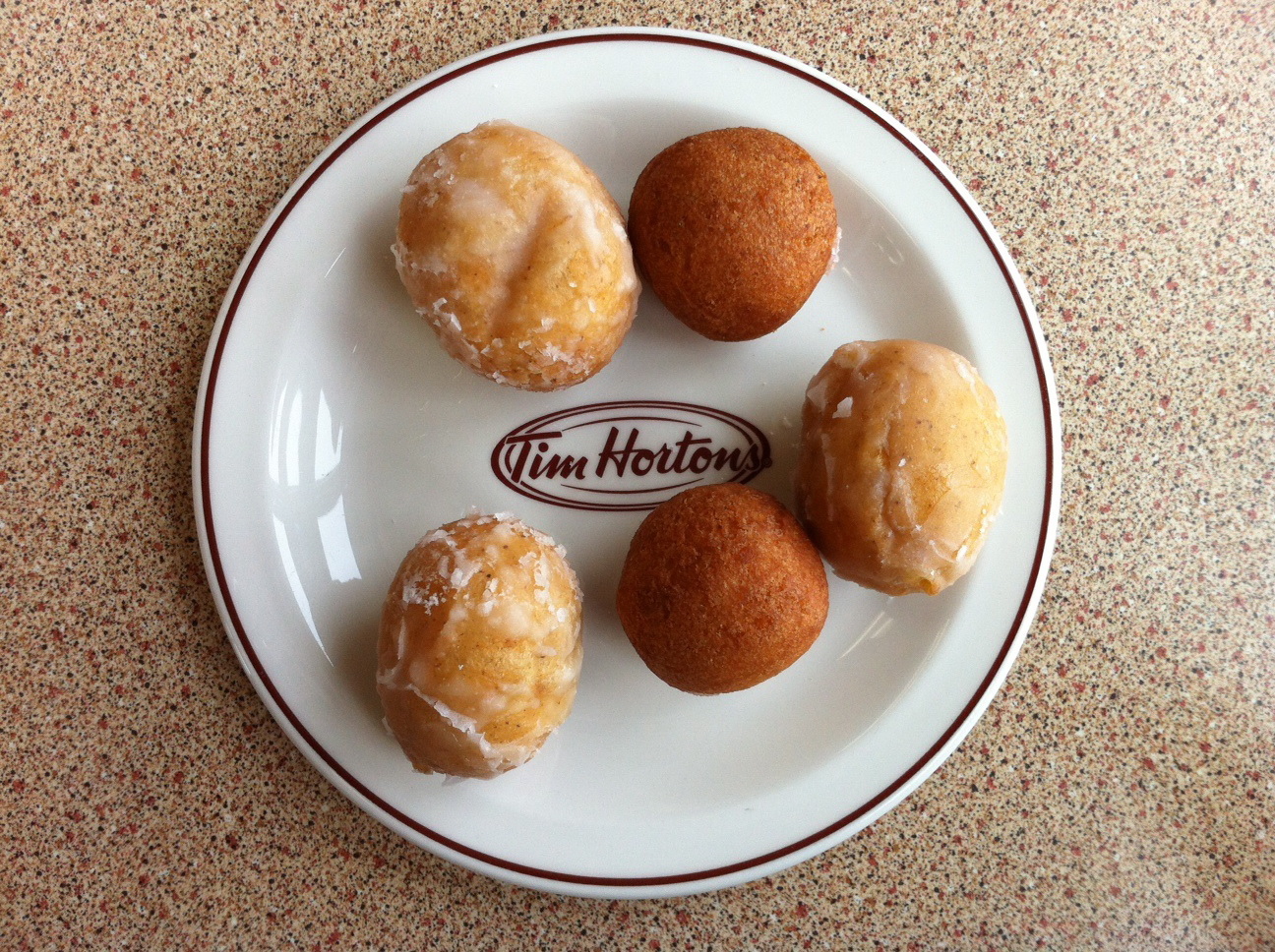 Obviously not amused that I’m revealing his unusual habit to the public.  We stopped along the way to Tim Horton’s.  If you visit Canada, you will become friends with Tim Horton’s.  It’s Canada’s biggest coffee + doughnut fast food chain.  The first time I went there was without Jeff + I ordered doughnut holes.  The girl looked at my like I was an alien moron.  They’re called “Timbits”, y’all!!  Learn it!  Love it!