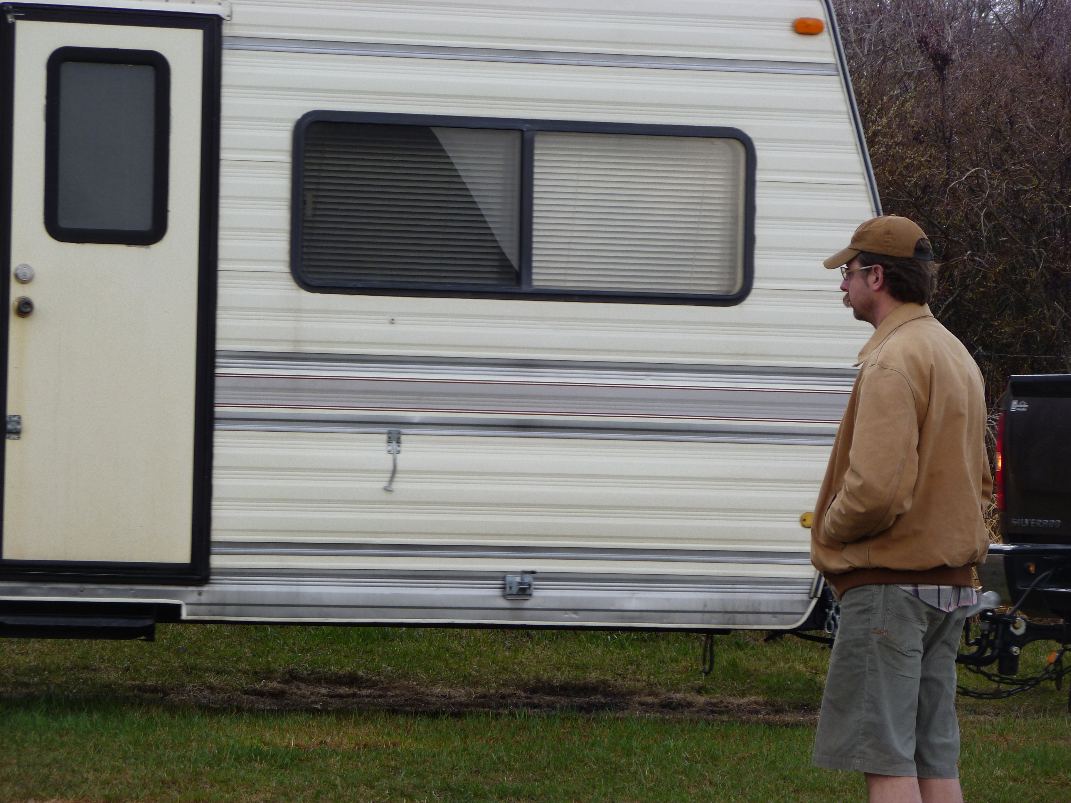 It may appear that Jeff is observing the trailer, but I guarantee you my dear readers, his mind is a blank slate. A burnt piece of toast.