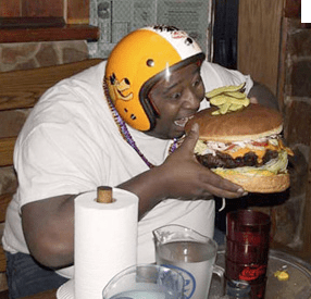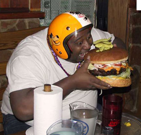 Wow you sure look different, like a large black male. Is the helmet for the food coma to follow after this large burger hits your intestines?