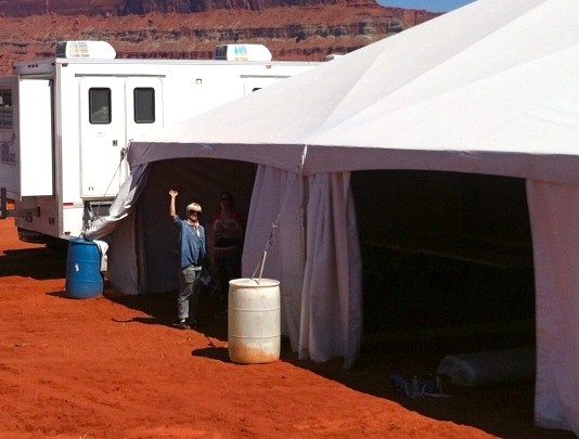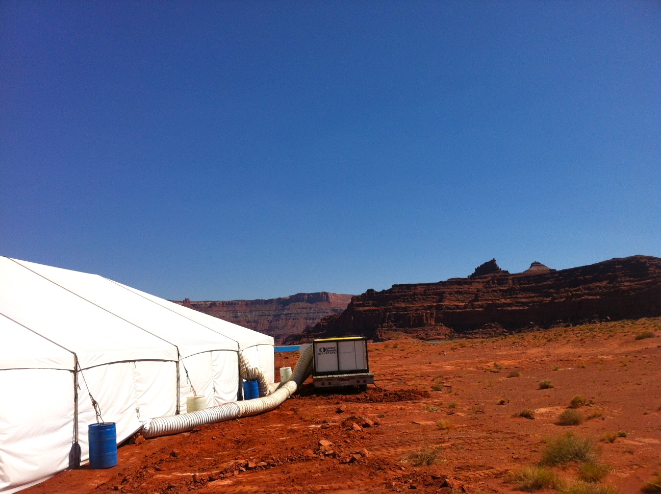 The back of our tent – that’s the air condition unit that looks so small + innocent.  We would later discover it will frequently break down on us during the over 100 degree heat.  Extra fun times when you’re enclosed in a hot sauna with over 60 sweaty bodies + food.  Yum!