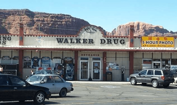 So random.  After devouring some really tasty tacos at “Wake + Bake Cafe” (heh-heh, more funny names – I love Moab), Sarah + I wandered across the street to our costume department’s favorite shopping destination.  Walker Drug.