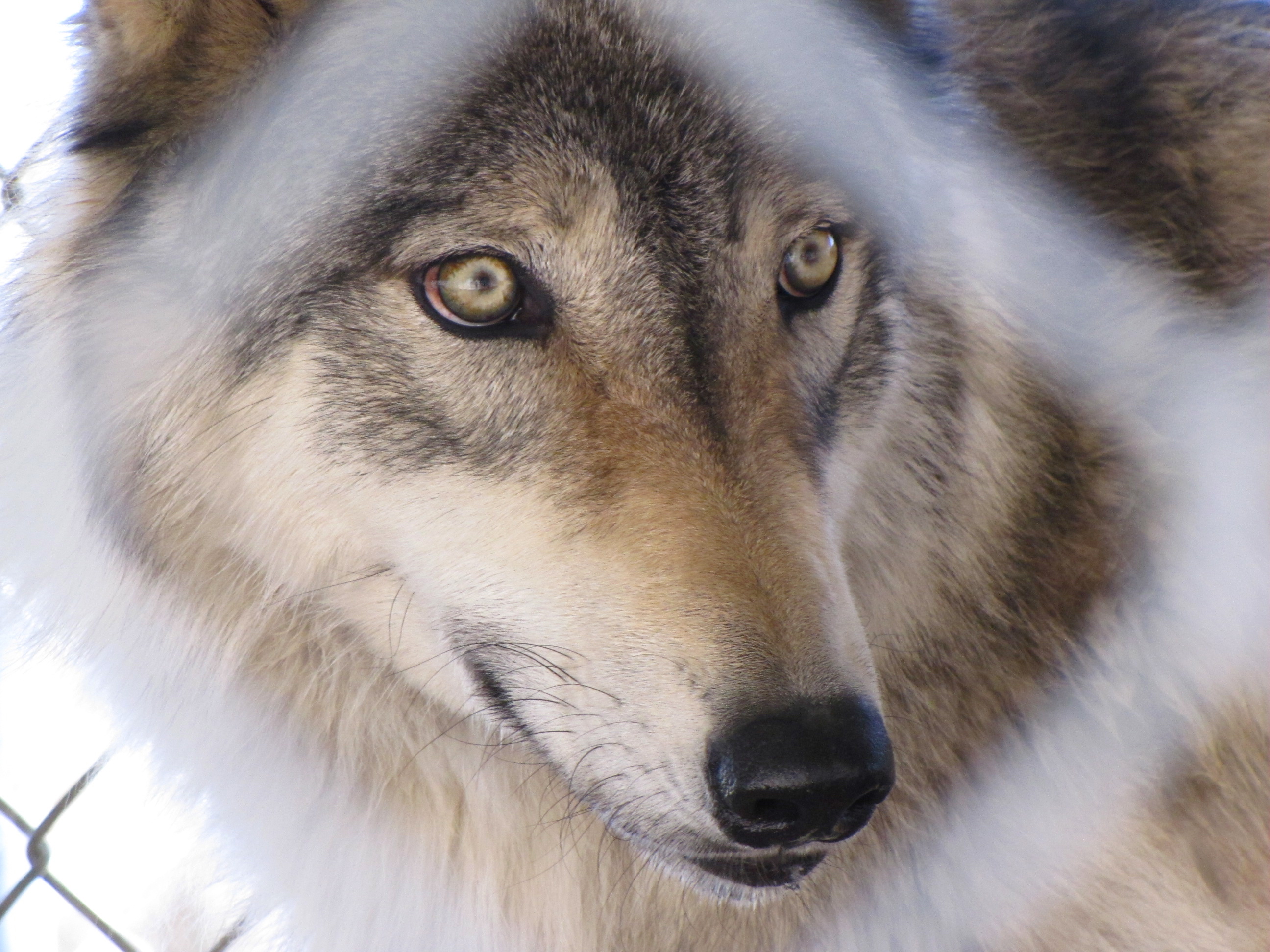 We took the boys back to their kennels, sadly for me. The other wolves were howling, excitedly awaiting their lunch. Here’s an amazing close-up photo Jeff took of one of the other wolves.