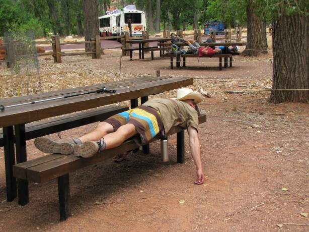Good lord!!!! Well, after 3 uphill hikes in 5 hours my calves were burning. We walked back to the visitor’s center + Jeff had been dying to take a jump in the river.