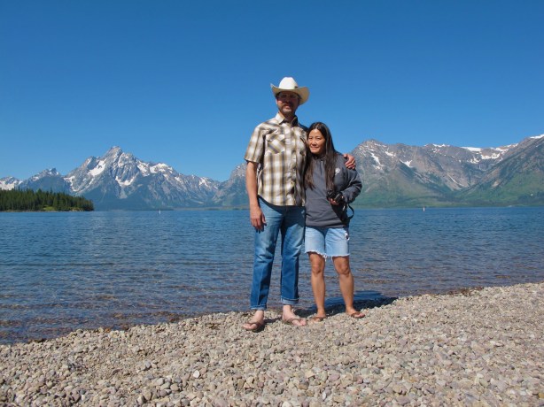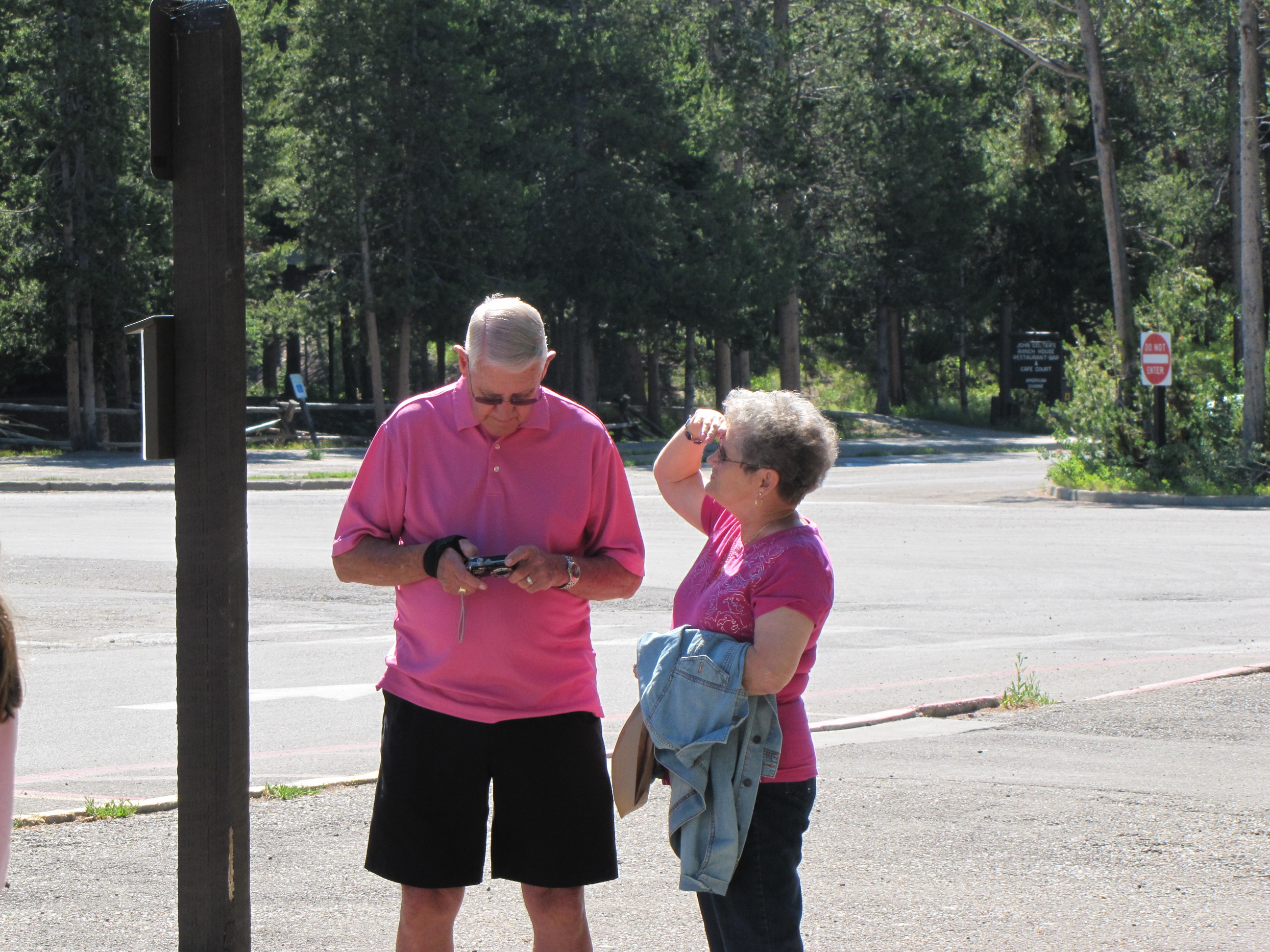 Aren’t the Grand Tetons breathtaking? We headed to breakfast – Colter Bay Village is great because they have restuarants, visitor centers, the marina + gift shops. Here is a cute little couple that like to coordinate their outfits – pink at that!!!!