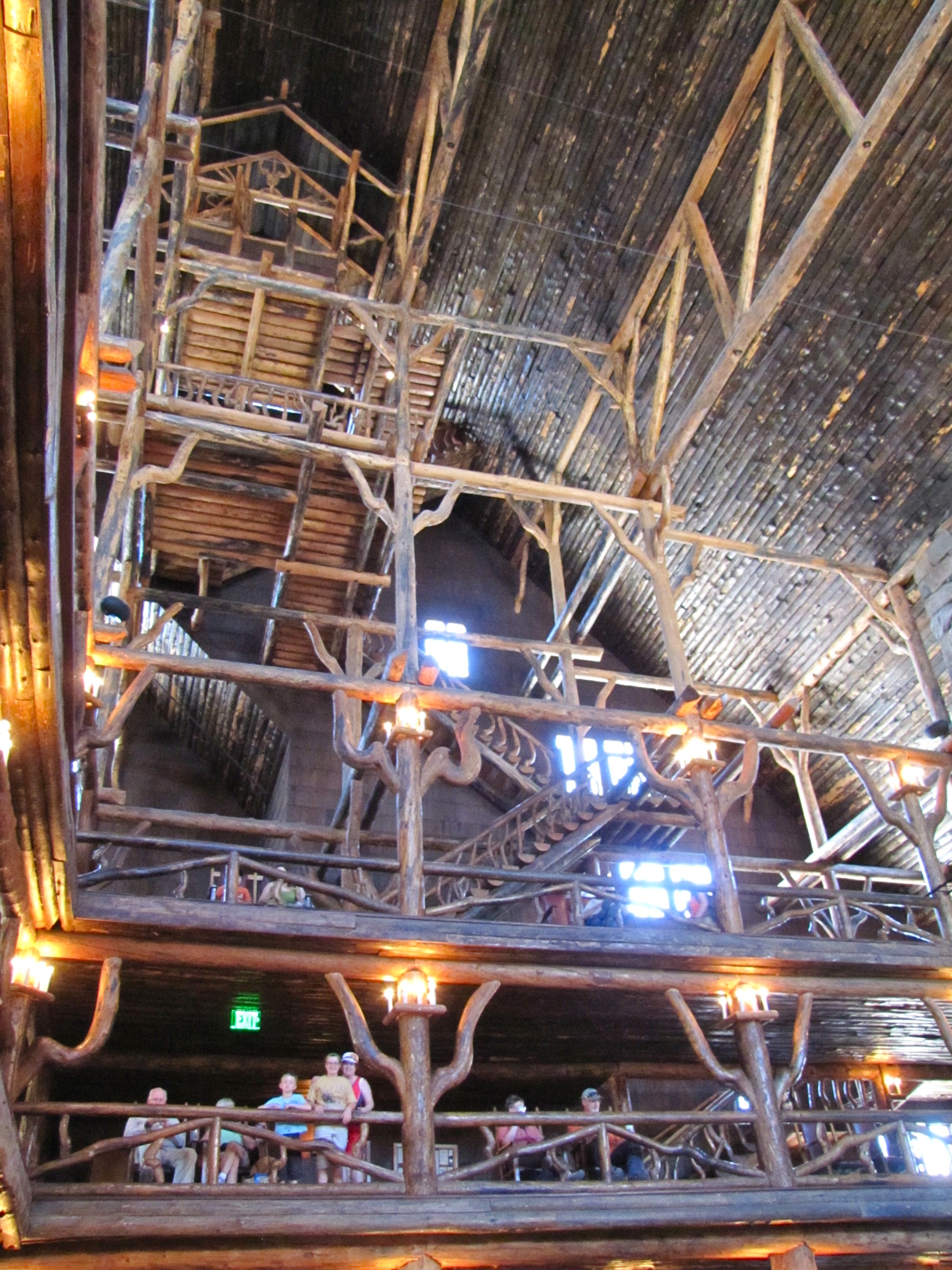 The Old Faithful Inn first opened it’s doors in 1904 + is one of the largest log hotels in America. Designed by Robert Reamer, the architecture was crazy + there was a “Crow’s Nest” at the tippy top where an orchestra would play for the guests in the lobby below.