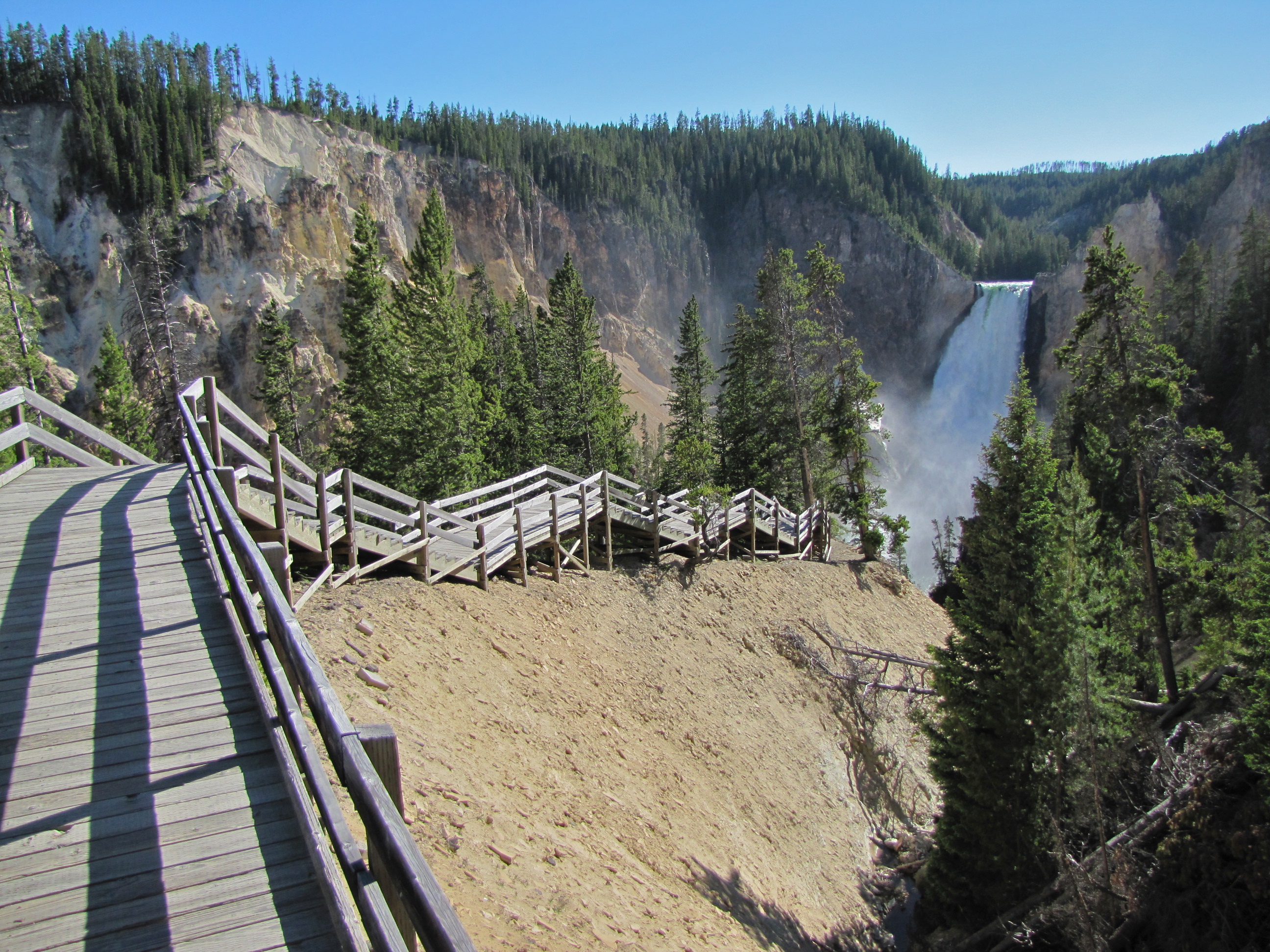 Lower Yellowstone Falls. It is a steep hike down – these old stairs were FREAKING ME OUT!!!