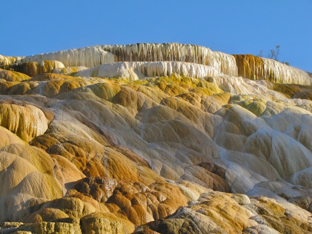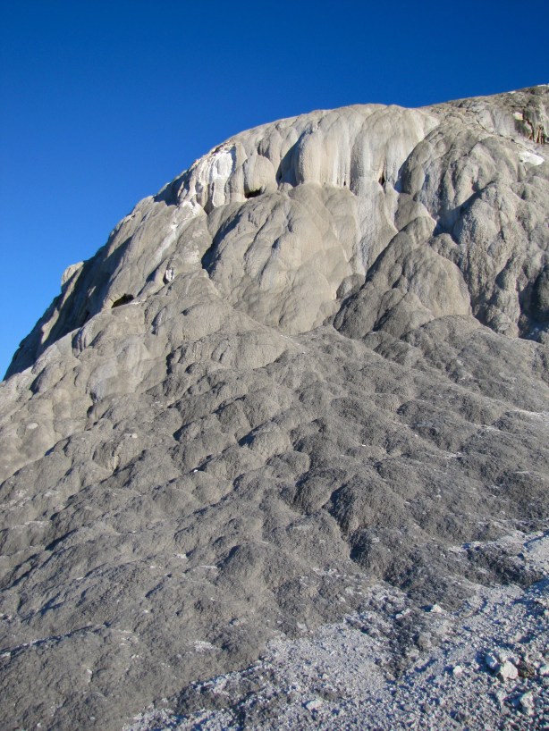 Mammoth hot springs!!! Okay folks, at this point I was getting really burnt out. You know when a kid goes to Disneyland + their head is spinning from excitement? And then toward the end of the day, it’s Meltdown City + they don’t give a rat’s ass if they’re in the Happiest Place on Earth anymore? That’s how cranky pants I was getting. But once I got out of the car + saw these awesome travertine formations, I settled down.