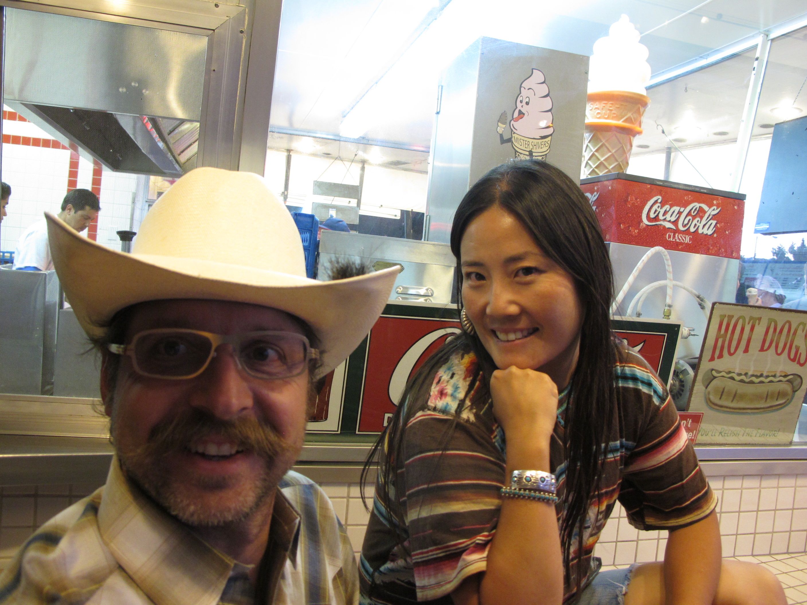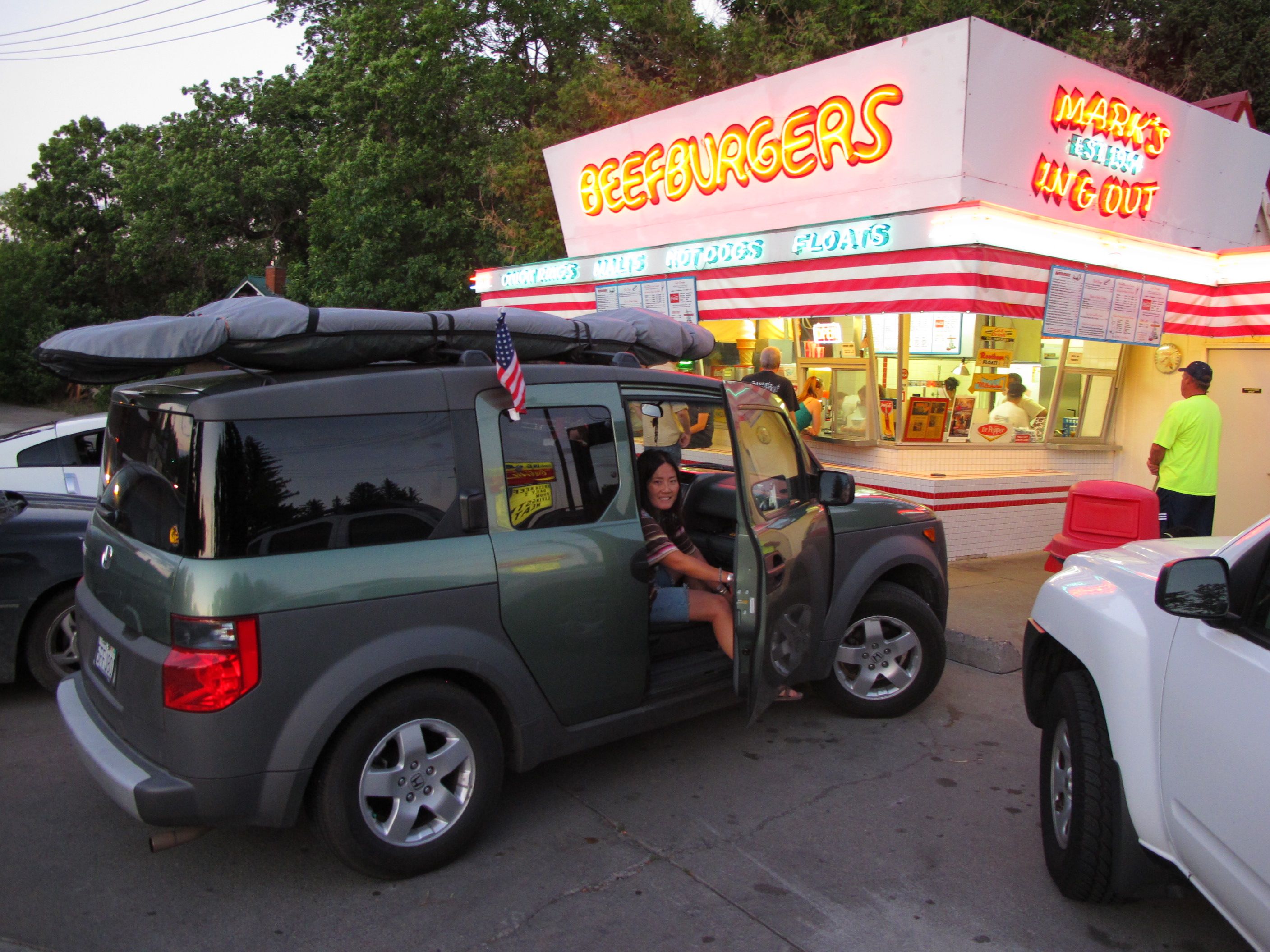Get me outta this car!!!! I shouldn’t complain – Jeff’s been doing most of the driving!!! Wooo!!! Lucky me!!!! Mark’s In and Out established in 1954, y’all!!!! See me in the back waiting for our order?