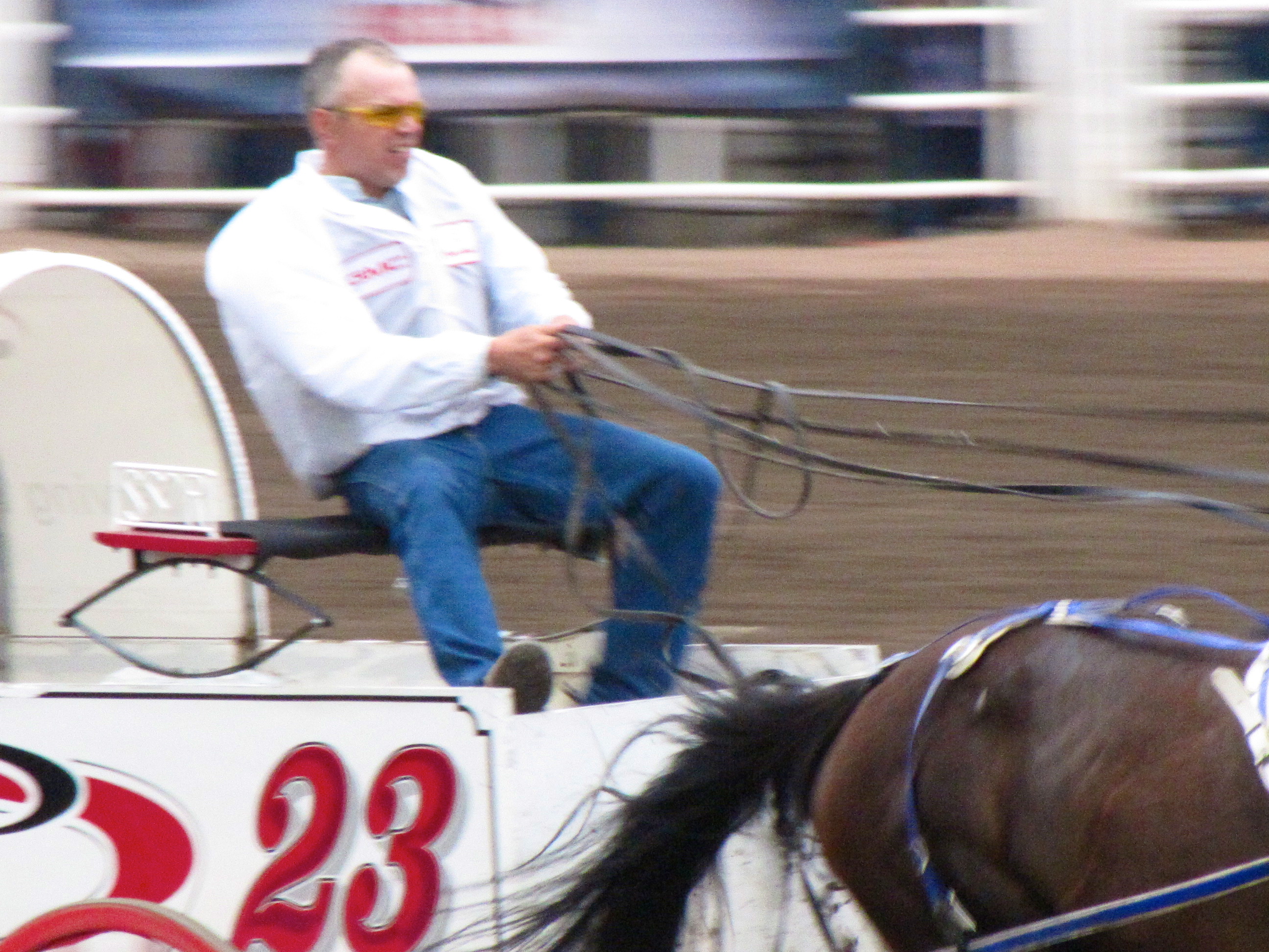 The day before we attended the Chuckwagon races there was a terrible accident on the racetracks.  Chad Harden’s left lead horse suffered a ruptured aortic aneurysm, causing the horse to immediately collapse.  This impelled 2 other horses to come tumbling down with him + all 3 horses had to be put down.  It really grieved me + all of the racing community. It tore me apart.  I was shopping around town + it was all over the radio, all over peoples’ lips as I walked the town.  I have more to contribute on this much disputed subject towards the end of the post.