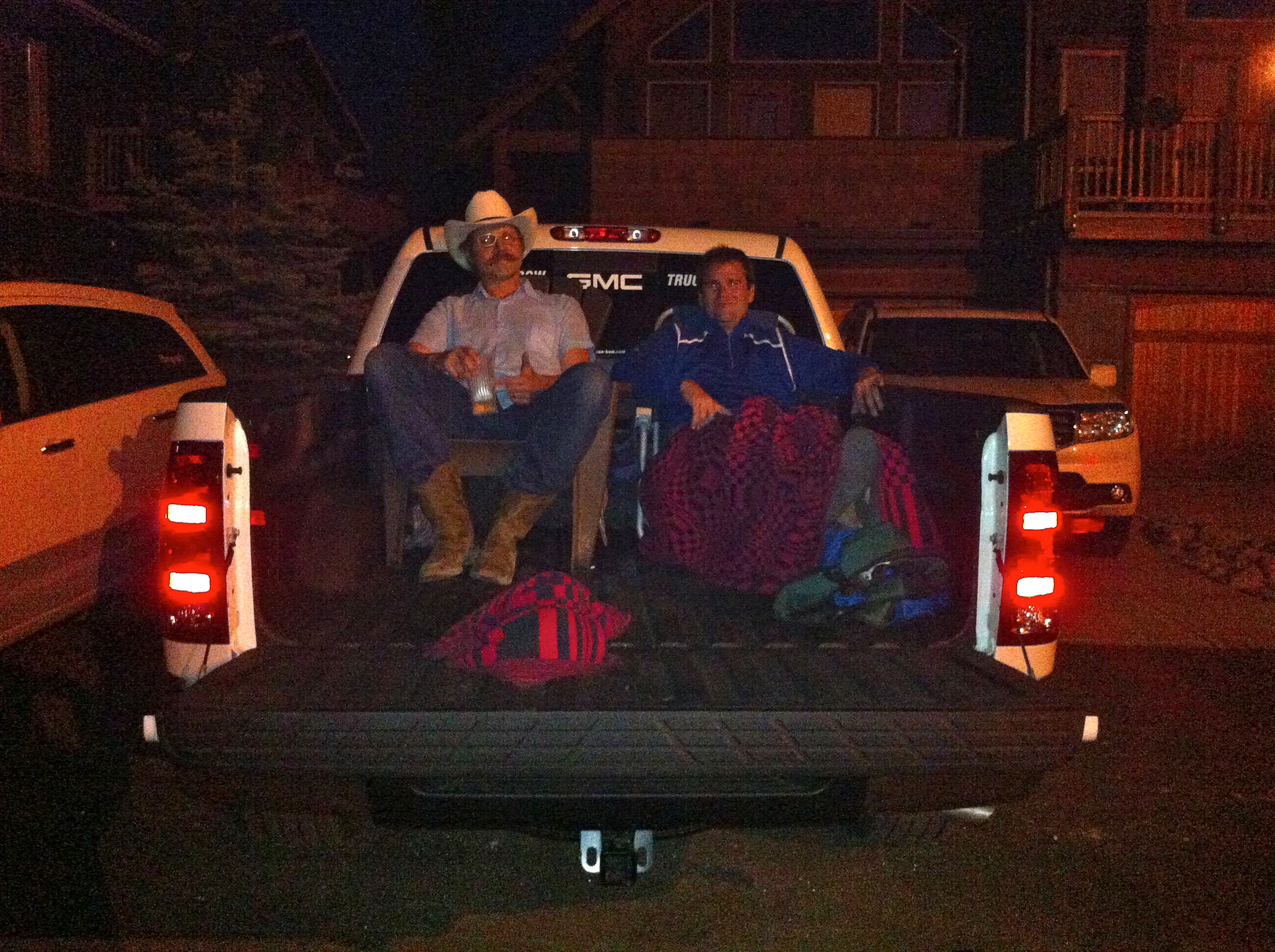 That evening, Jeff + our buddy Kyle devised a plan on how to get the best free seats at the Canmore Folk Festival. You wanna know how? Drive right up to the outskirts of the fest, park yer truck + straight up chill out!!!!
