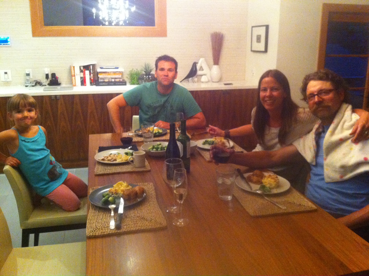 Dinners with Karen, Kyle + Juna Bug (if you’re wondering Jeff is wearing Juna’s blankie as a cape for dinner).