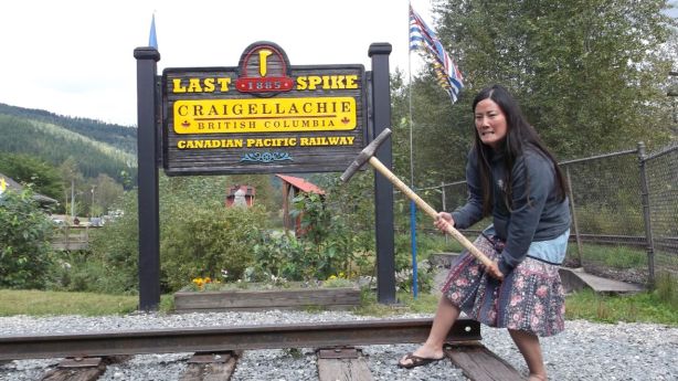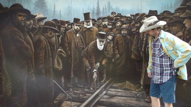 Here is the historic photo of financier + railway director Donald Smith driving in the Last Spike.