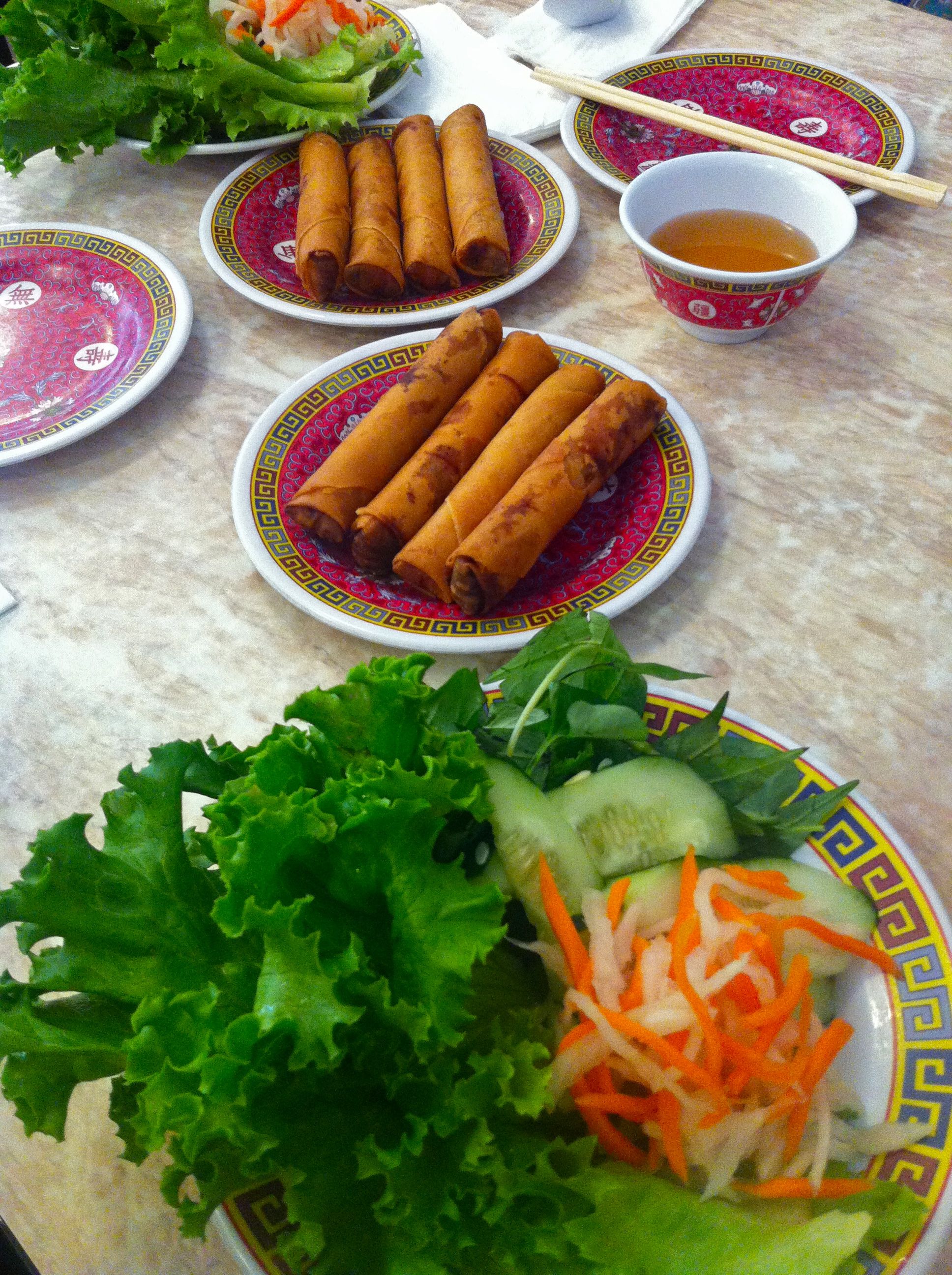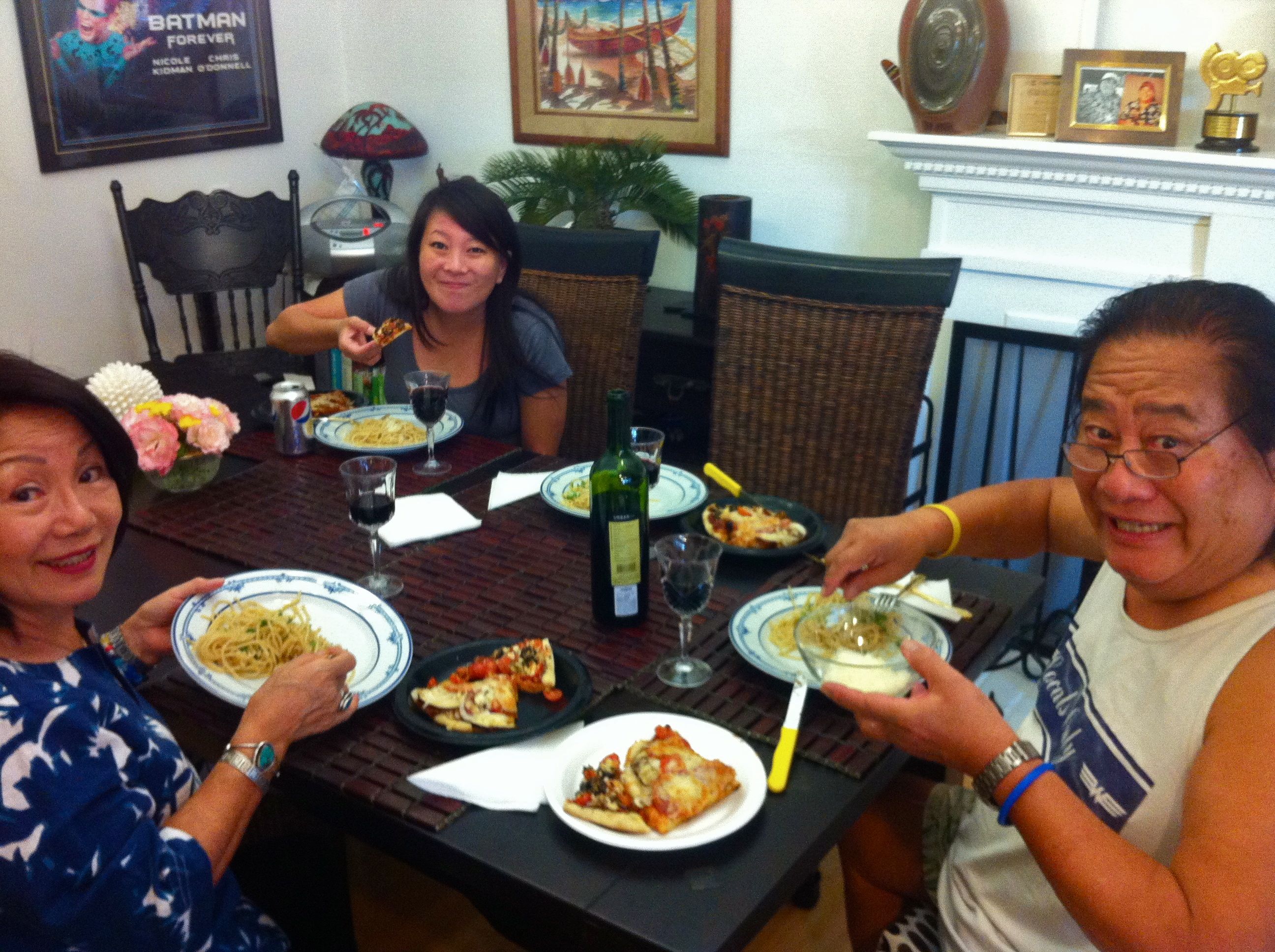 Eating Vietnamese food with my parents.