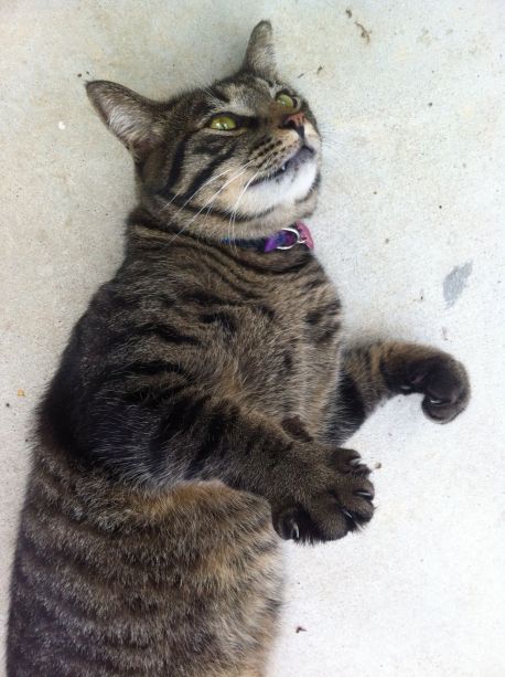 Let’s not forget the sweet animals that complete the love fest!!!  Here is Zack, a neighborhood cat that has been hanging out with us in the mornings.  He is a regular little wiggly munchkin.  Lookit those paws!!!!