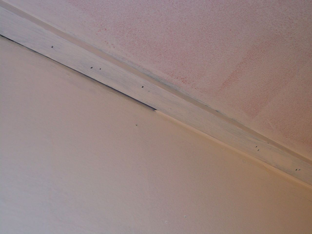 Now that the living room is painted white, the gaps between the wonky walls + the crappy cheap trim is devastating.  The caulking makes A WORLD OF DIFFERENCE!!!!!!  Why didn’t any of the previous tenants think of caulking before in this house?  I mean, I wouldn’t have – but regard this close up picture + you shall all observe!!!