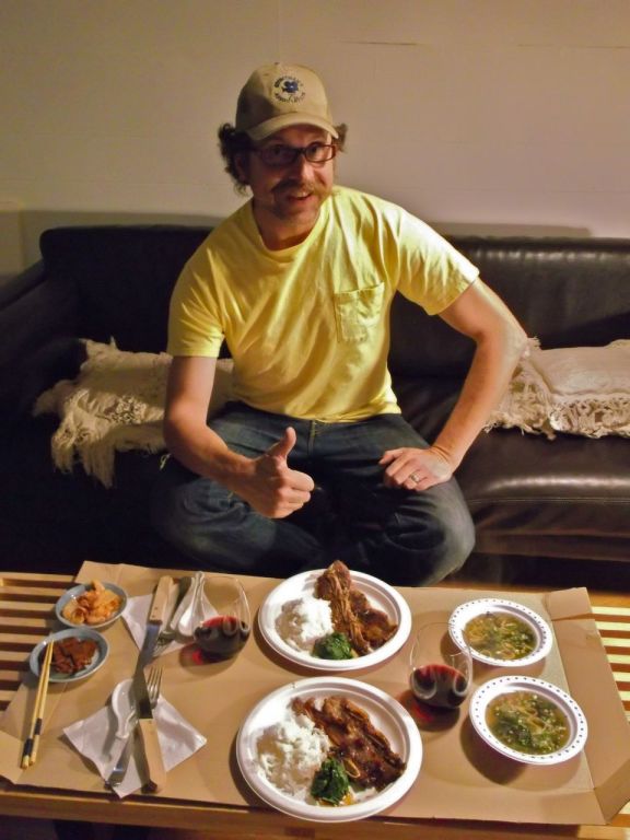 Korean beef, rice, spinach, miso soup + kimchee!!!  We still don’t have proper plates + bowls, since they’re still in my storage in Bellingham.  It’ll all come together little by little!  I just have to be patient!  But Jeff is an insane work horse, so it won’t be long!