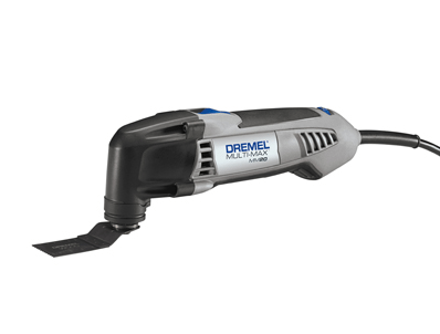 I bought Jeff a Dremel Multi-Max MM20 for his birthday which he used to cut a hole into the back of one of the bookcases.