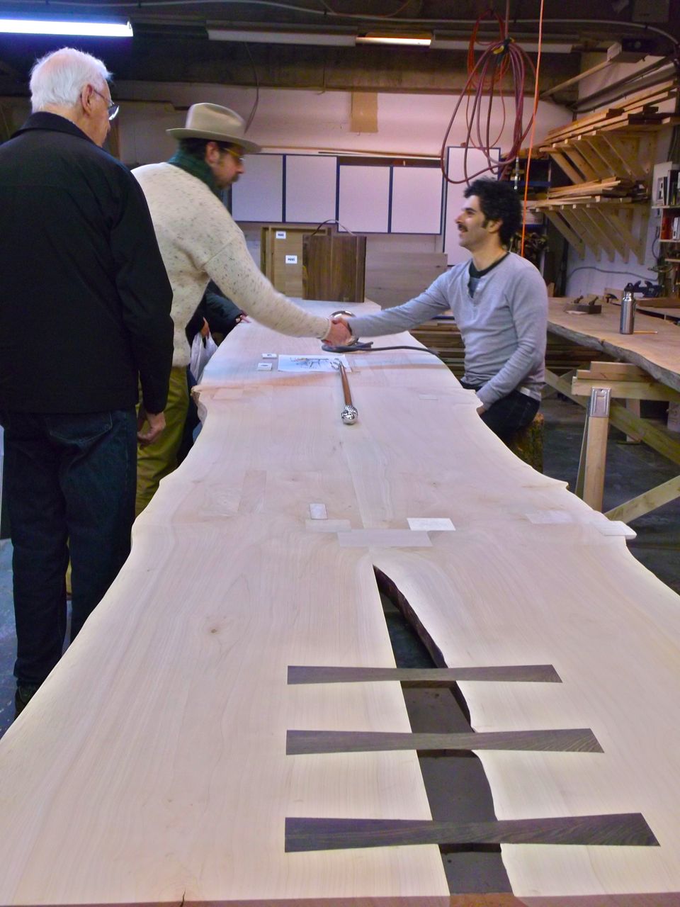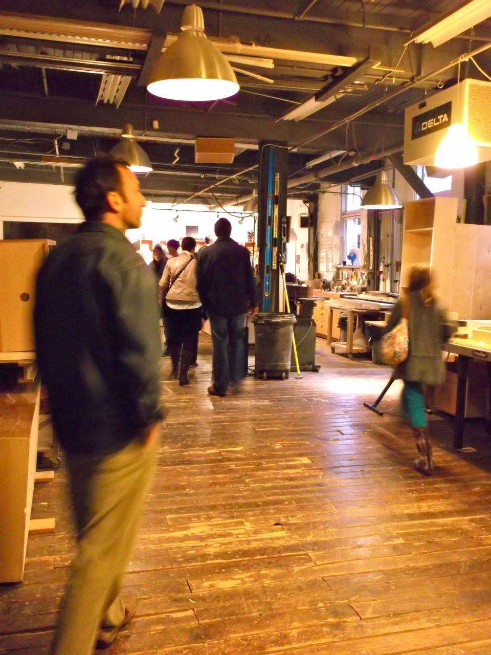Another highlight of the Parker Studios was a woodworking collective in a hugemongous space on the first floor.  Here is Jeff’s brother’s friend Mark Alan Greenberg that created this goreous-o table for a software company – mmmmm, yummy.  The table people, the table.  Get your minds out of the gutter, for god’s sake.