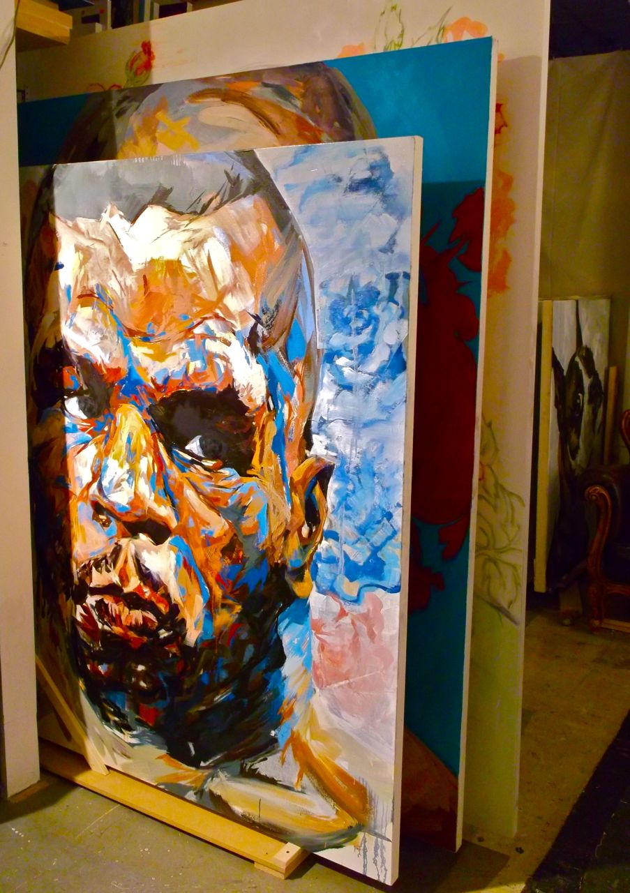 His large scale paintings + use of bold color + broad paint strokes really evoked the raw energy of the fighters he uses as his subjects.