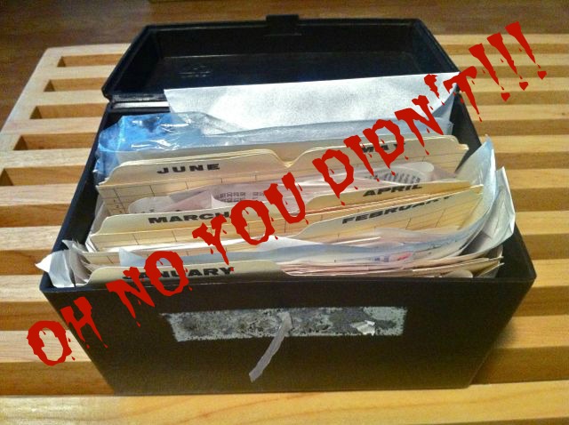 Receipts in a weird, old plastic index card recipe box, y’all!!!!George Clooney Oh Hell No