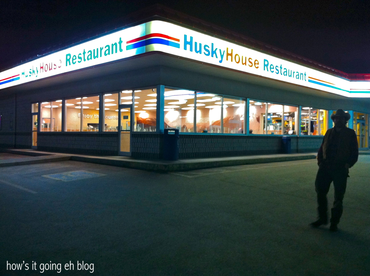 After the 10th hour I was having none of it. I was ready to throw in the towel, as it were. We made a stop at the Husky gas station. In Canada they have Husky gas stations – isn’t that cute?! This one had a restaurant! Alas, it was closed.