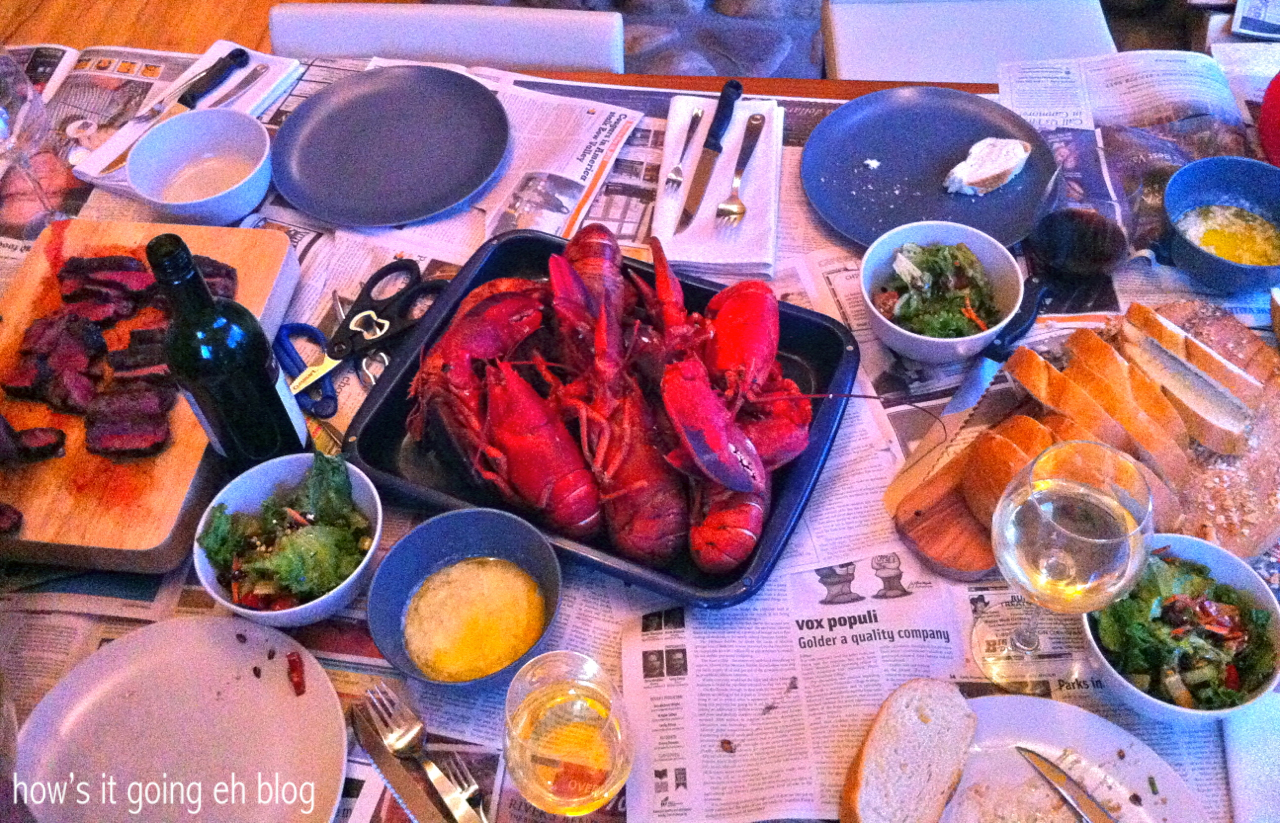 The next night we had an INSANE dinner of lobsters + steak!Dress Up Lobster Fest - 11