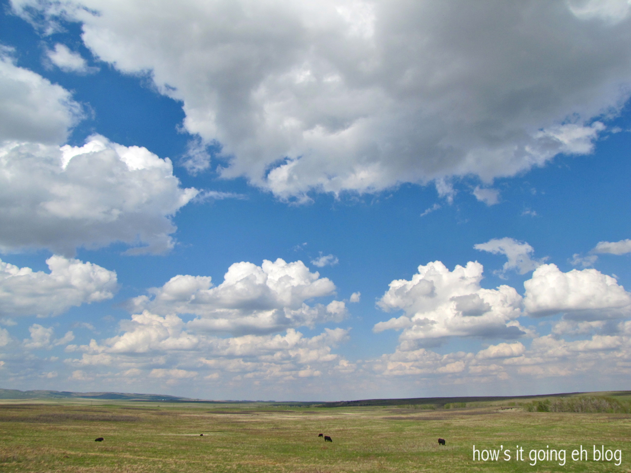 Great, massive cumulonimbus poofy cotton candy!  The teeny dots are cows, which gives you perspective to how gargantuan the clouds truly are!  Oh, the prairies!!!Prairie Paddlboarding - 15