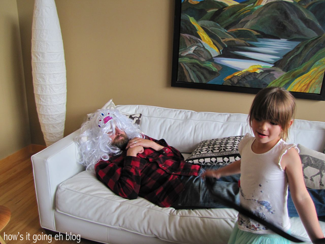 As you can see, Jeff loves it when I document dress up time. Juna busted out a glamorous white wig from where, I don’t know. We told her if she finished all of her dinner, Jeff would put the wig on. Finish her dinner she did, + Jeff kept to his word!