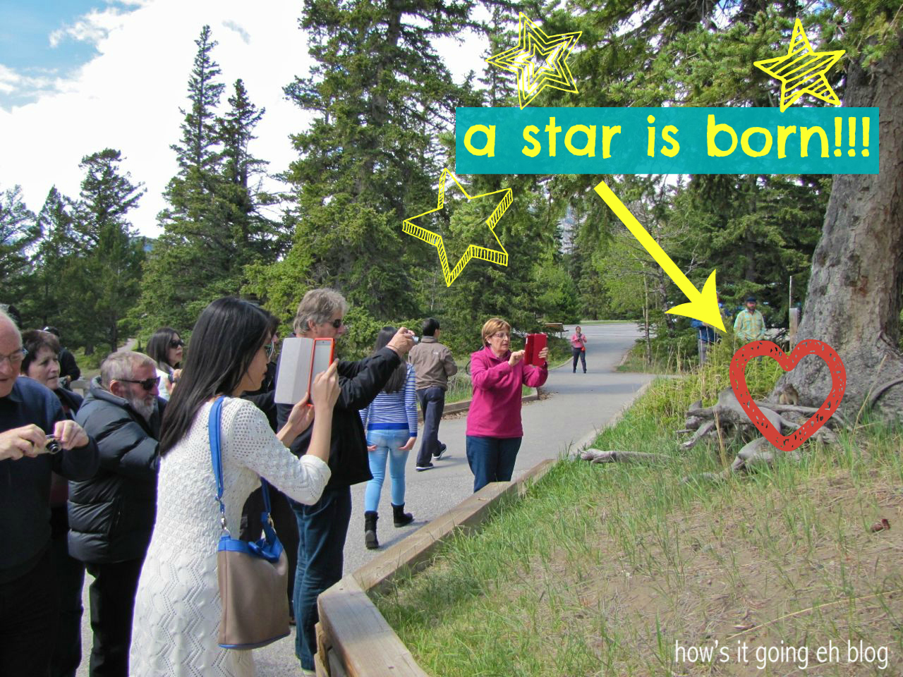 Omg, it was so hilarious – there was a little chipmunk posing under a tree + there were so many tourists taking pictures – so I took a picture of people taking pictures.