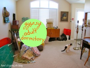 ha ha ha this is us every couple of years and is why we truly follow the motto “less is more”. Our suitcases usually end up being our dressers. We’re heading to the island in a few weeks and our tiny bedroom is crammed with bags and boxes because people feel the need to help us start out. Totally grateful, but I’m starting to feel slightly claustrophobic. Btw, I’m really digging the groovy turquoise lamp you have stuffed into the corner. Just remember that it’s only a temporary situation. You’ll get through it. Trust this gypsy. 😉